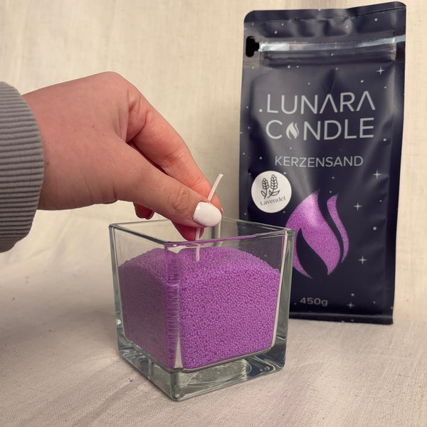 Aroma Kerzensand 450g Füllmenge + 6 hochwertige Dochte für mehrfaches Wiederanzünden